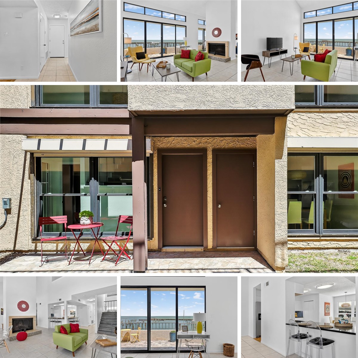 Enjoy the luxury lifestyle on Ocean Drive with privacy and all the amenities. Tasteful updates are front and center in this two-story waterfront townhouse. Marina Del Sol Townhouse #2 offers a comfortable hideaway close to downtown, Christus Spohn Shoreline and Cole Park with peace and beauty on the Corpus Christi bayfront. You'll look forward to the panoramic views from each bayfront window every morning and evening. Enter the gated property and park in the shade right at your front door! As you enter, you'll notice fresh updates right away. The soaring ceilings with wooden beams add warmth to this bright condo. A spacious remodeled kitchen welcomes with sleek white cabinetry and rich quartz countertops, stainless steel appliances, luscious blue backsplash and vibrant lighting. Choose the roomy eat-in kitchen or dine while overlooking the bay through huge windows. Entertain in the adjacent living area that is flooded with light. A wood-burning fireplace offers a cozy touch to this modern home. You'll appreciate the downstairs bedroom and bathroom. Upstairs you'll find another secondary bedroom and large primary bedroom, both with en suite bathrooms. All bedrooms offer spacious closets with built-in cabinetry. Bathrooms sport marble countertops and tiled showers/bathtubs. The primary bathroom offers a welcome retreat after a long day with both a soaking tub and separate shower. Have access to all the amenities including a rejuvenating pool with a cabana, a relaxing hot tub and sauna, a well-equipped gym, racquetball and half basketball court and large meeting rooms with kitchen facilities for gatherings. A big bonus for out-of-town guests - the tower offers hotel room accommodations. EV chargers are also available. HOA fees cover high-speed internet, cable, water, sewer, trash and exterior maintenance and insurance. Marina Del Sol's HOA office is onsite for your convenience. This is a must-see. Call your favorite Realtor(R) today to tour this piece of Texas paradise!