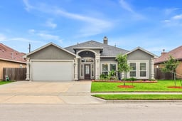 Welcome Home! This beautifully maintained 4-bedroom, 3-bath home offers a thoughtfully designed 3-way split, open concept living that's perfect for modern lifestyles. From the moment you enter, you're greeted by a spacious foyer with high ceilings, crown molding, and arched entries that create a warm & inviting atmosphere. The formal dining room with natural light from picture windows, is ideal for entertaining or quiet dinners at home. The oversized living room is a true showstopper, featuring exposed ceiling beams, a decorative fireplace, and custom maple built-ins that add character and functionality. The chef’s kitchen is a dream come true, outfitted with rich maple cabinetry, granite countertops, a large island with breakfast bar and double sink, tiled backsplash, double ovens, and a gas cooktop. The adjoining breakfast nook offers views of the expansive backyard. Retreat to the luxurious primary suite complete with a trayed ceiling, spa-like bath featuring dual vanities, a jetted tub, and a walk-in shower with pebble flooring. The second bedroom, privately located near the kitchen, includes its own full bath—perfect for guests. Bedrooms three and four are generously sized and share a full bath. Step outside to the covered patio and envision your dream backyard—the large open space is ready for your garden, pool, or outdoor oasis. This home is a rare find—meticulously cared for, move-in ready, and packed with high-end details. Don’t miss your chance to own this stunning property. Schedule your showing today!