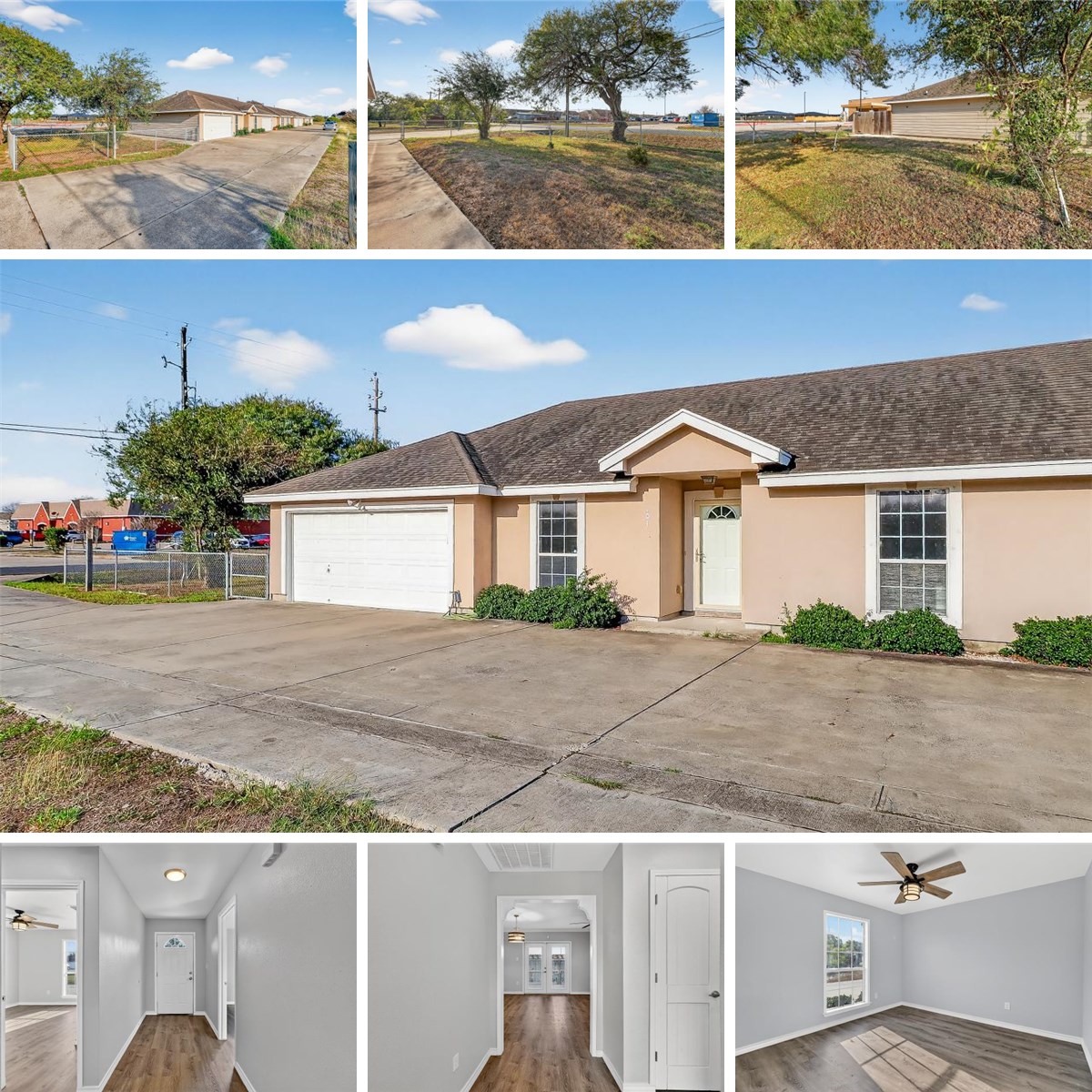 Discover this beautifully updated 3-bedroom END UNIT condominium—the only 3-bed unit in this desirable South Side community—offering over 1,200 sq. ft. of stylish, low-maintenance living with an attached 1.5-car private garage. This move-in ready home features a neutral color palette, NO carpet, and a functional and spacious split floor plan, providing both comfort and privacy. The open-concept living & dining area flows effortlessly into a modern kitchen complete with quartz counters, contemporary backsplash, stainless steel appliances, and eye-catching coastal blue cabinet accents. Both bathrooms are newly updated with quality finishes, giving the home a fresh, modern feel. Enjoy outdoor living in your oversized pergola-covered private patio, perfect for relaxing or entertaining. With no grass to cut, this home is ideal for those seeking convenience without sacrificing style. A major bonus: the HVAC system was Recently installed in July 2025 and includes upgraded features for improved efficiency & comfort. The HOA-maintained fenced community yard offers additional space—great for pets to enjoy without the upkeep. Located in the heart of the South Side, you're just minutes from top-rated schools, medical facilities, fine dining, shopping, Texas A&M–Corpus Christi, and some of the best fishing spots on the Gulf Coast. A quick drive brings you to the Naval Base and Corpus Christi Army Depot, making this an excellent option for military relocation buyers. This unique condominium blends modern design, affordability, and unbeatable location—a must-see for anyone seeking space, convenience, and value. Stop Scrolling & Book your private tour TODAY!